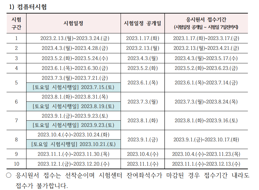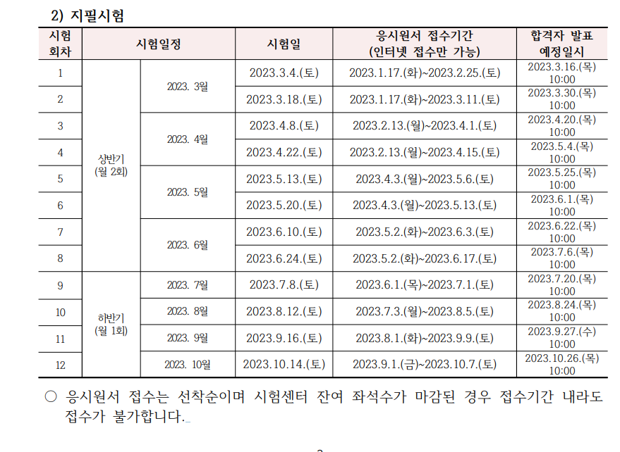 하반기 보다는 상반기에 시험이 월 2회씩 집중되어있으니, 준비를 빠르게 하셔서 상반기에 시험을 보시는 것을 추천드립니다.