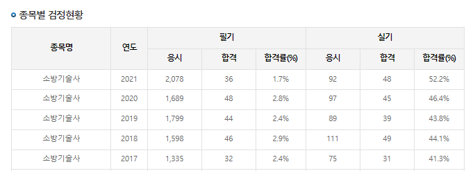 만약 소방기술사를 준비한다면, 필기시험에 대한 상당한 준비가 필요해보입니다. 그에 비해 면접은 50%이상의 합격률을 보이고 있습니다.