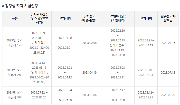 아직 준비가 다 되지 않으셨다면 6월말에 있는 3차 시험을 준비해보시는 것도 좋습니다. 아직 3월이라는 시간이 남아있어서 준비를 하시기에는 시간이 조금 있습니다. 국가 자격시험을 3개월만에 준비해서 따는 것은 쉽지 않아보이지만, 아직 시험까지 시간이 남은 만큼 열심히 하시면 좋은 결과를 얻게 되실 수 있습니다.