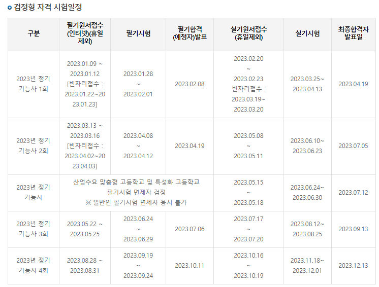 다른 제과, 제빵 자격증만큼이나 많은 분들이 보는 시험은 아니지만, 1년에 4회씩 치러지고 있습니다. 거기에 특성화 고교 필기시험 면제자들을 위한 실기시험도 있어서 실기시험은 총 5회 실시가 됩니다.