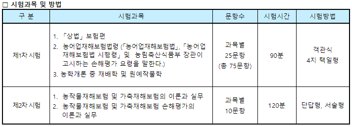 2. 손해평가사 시험과목