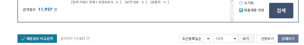 그랬더니 검색 결과는 11,927건 이 나왔습니다. 요즘과 같은 취업이 어려운 시기에 채용공고가 상당히 많은 것을 알 수 있습니다.