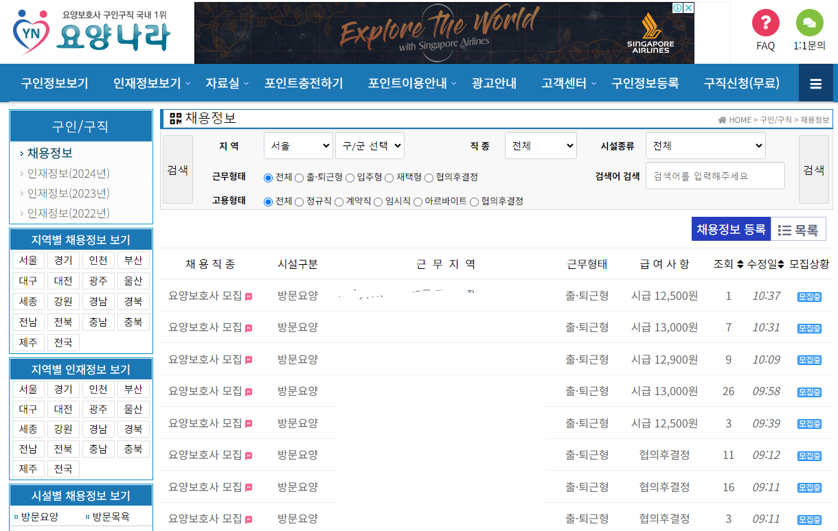 일반 일자리를 구하시는 분들이라면 처음들어보셨을만한 사이트들이지만, 요양보호사들의 구직에는 도움이 되는 사이트니 믿고 사용하셔도 됩니다.