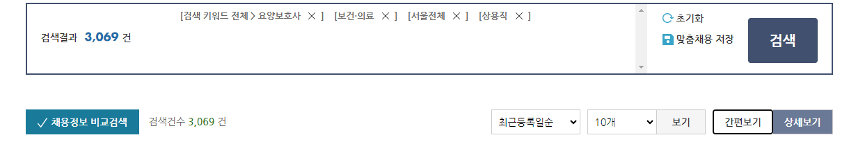서울을 기준으로 봐도 3천건이 넘는 구직 건수를 볼 수 있습니다. 여기에서 내가 사는 곳 근처로 세분화 해서 찾아볼 수도 있으니 구직을 하시는 요양보호사 분이라면 한번 워크넷도 확인해보시는 것을 추천드립니다.
